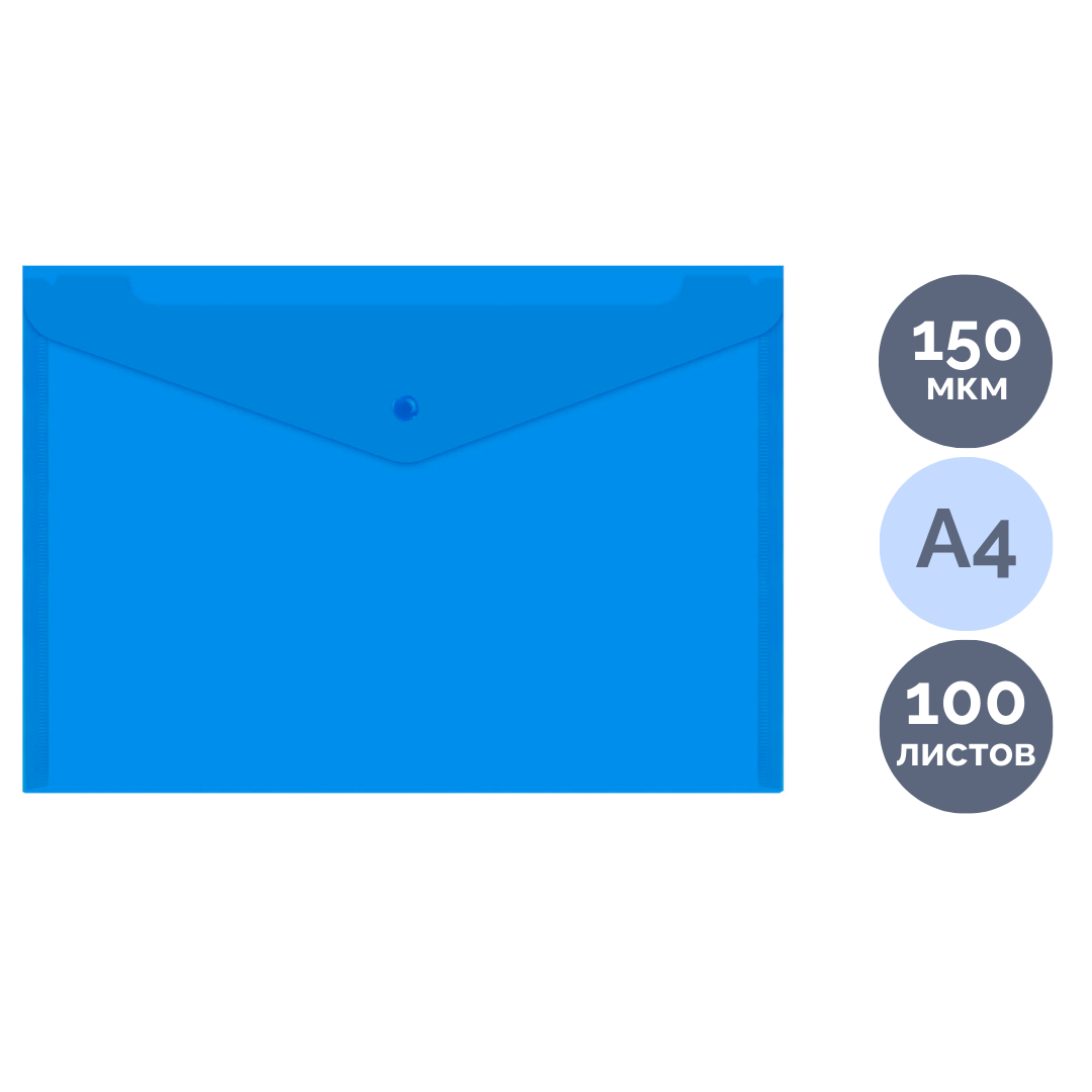 Главная / Канцелярские товары / Папки, файлы / Конверт с кнопкой A4 Brauberg,150мкн, синяя, 273071