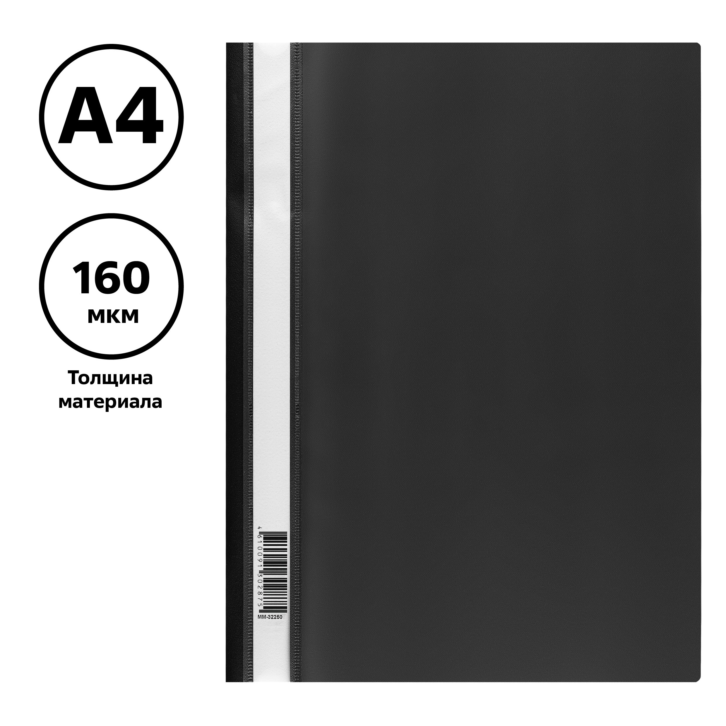Артикул: 00000008601 Категории: Канцелярские товары, Папки, файлы Метки: 160мкм, Скоросшиватель пластик А4 СТАММ, черный с прозр. верхом ММ-32250