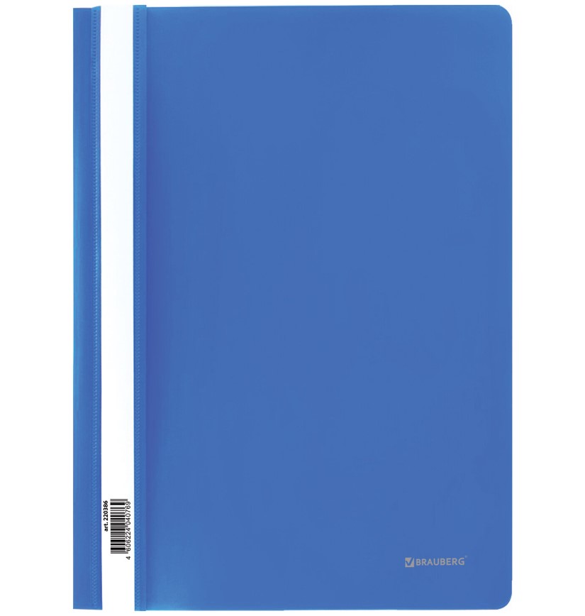 Скоросшиватель пластик c прозр.обложкой А4 BRAUBERG, голубой 180мкм, 220386