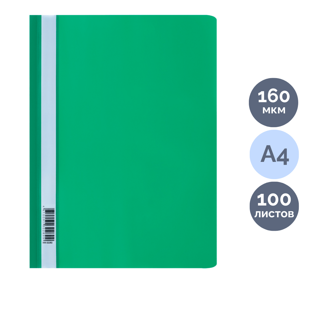 Скоросшиватель пластик А4 СТАММ, 160мкм, зеленая с прозр. верхом ММ-32252